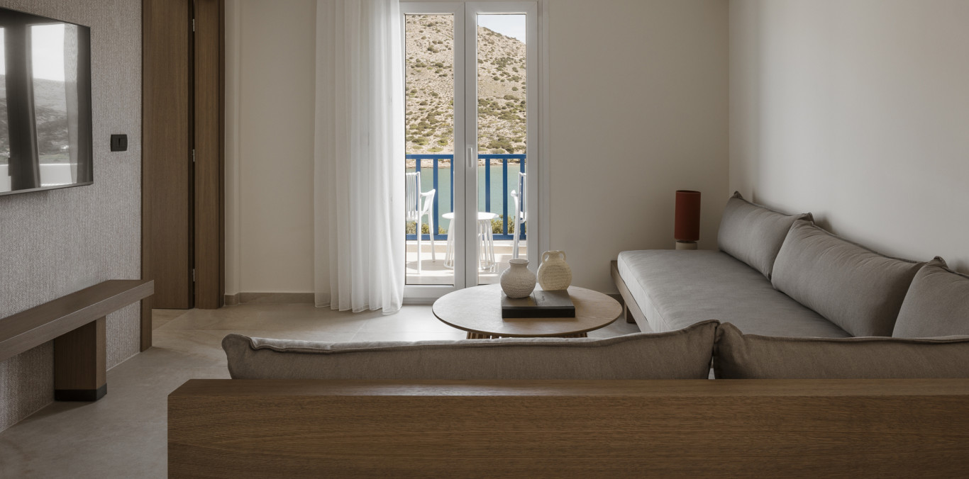 The Two-Bedroom Sunset Suite with Sea View is the perfect option for families seeking a family holiday. It offers separate sleeping areas, one bathroom with a shower, and a comfortable living room. Cherish beautiful moments with your loved ones and add an extra touch of elegance to your holidays.